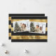 Modern black and gold photo Merry Christmas card. The gold foil effect is only simulated in the artwork. Easily personalise this elegant photo holiday card with your photos and family name.