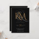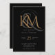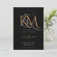 Elegant Black Gold Modern Script Monogram Wedding Invitation