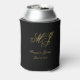 Elegant Black Gold Monogram Calligraphy Wedding Can Cooler