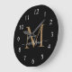 Elegant Black Gold Monogram Feminine Script Name Large Clock