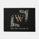 Elegant Black Gold Monogram Greenery Foliage Doormat