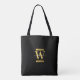 Elegant Black & Gold Monogram Modern Script Tote Bag