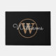 Elegant Black Gold Monogram Script Name Doormat