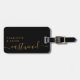 Elegant Black Gold Monogram Script Name Luggage Tag