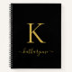 Chic Elegant Gold Monogram Script on a chic Black Spiral Notebook. Easy to customise with your own name and details. Perfect for your luxury lifestyle! Please contact us at cedarandstring@gmail.com if you need assistance with the design or matching products.