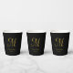 Elegant Black Gold Monogram Script Name Paper Cups