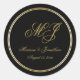 Elegant Black Gold Monogram Script Wedding Classic Round Sticker