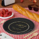 These elegant personalised wedding paper plates feature the bride's and groom's monogram initials along with their first names and wedding date in faux gold calligraphy on a simple black background bordered by a thin gold and black round frame. Please check out our I Love Weddingz shop to find more selections in this collection. Designed by Susan Coffey.