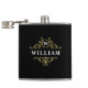This stylish flask features a classic black and gold design with an elegant gold emblem and a customisable monogram. Modify the name and initial to create a unique gift for groomsmen, Father’s Day, or a birthday.