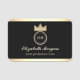 Modern, elegant simple professional black name tag with classy gold crown monogram, name and profession.