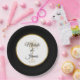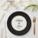 Customise these elegant black, white and gold paper plates with your special touch. This modern design features the bride and groom's names and wedding date, an artistic golden palm tree and elegant gold foil frame over a black background. If you need help or matching items, please contact me.