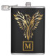 Elegant Black & Gold Phoenix Rising Monogram Hip Flask
