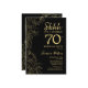 Elegant black and gold surprise 70th birthday party invitation with your photo on the back of the card. Trendy modern feminine design features botanical accents and typography script font. Simple floral invite card perfect for a stylish female surprise bday celebration. Can be customised to any age. Printed Zazzle invitations or instant download digital printable template.
