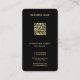 Custom Modern Simple Elegant Professional QR Code Template Black & Gold Standard Size Luxurious Premium Silk Paper Vertical Business Cards. Perfect for Corporate Professionals, Stylists, Architects, Engineers, Real Estate Agents, Accountants, Directors, Managers, Consultants, Designers, Teachers, Musicians, Realtors, Brokers, Attorneys, Lawyers, Doctors, all professions.