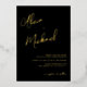 Trendy hand lettered bride and groom script names elegant modern wedding invitation in simple black and luxury real gold foil. ++++++++++++++++++ You can change background colour after selecting CUSTOMIZE further option. Also, you can choose from three foil colours: gold, silver, and rose gold. ++++++++++ The invitation is suitable for modern style trendy stylish wedding ceremonies and receptions.