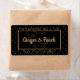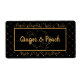 Elegant black and gold product labels with monoline floral outline and gold geometric grid border. Add your own text for a professional finish to your handmade and small batch goods like candles, body lotions and more.