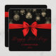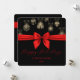 Elegant Black-Gold, Red Ribbon Holiday Card