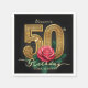 Elegant Black Gold Red Rose 50th Birthday Party Napkin