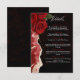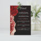 An elegant and modern wedding details card with a romantic design of red roses on a black background, accented with a luxurious gold texture. It's a beautiful way to share all your important wedding information with guests.