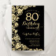 Elegant Black Gold Roses 80th Birthday Party Invitation