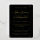 An elegant, modern New Year's Party Invitation featuring foil pressed handwritten script and scattered stars on black background. All text - apart from the 'New Year's Celebration' script - is fully editable, so you can easily add or delete text and change the font style/size/layout to suit your needs. This design is available in other colours and in a non-foil version.