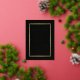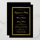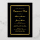 This elegant engagement party invitation features gold foil calligraphy script and a gold foil frame on a simple black background. Designed by Susan Coffey.