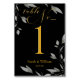 Elegant Black Gold Script Eucalyptus Leaves Table Number