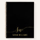 Black Gold Minimalist Modern Initial Monogram Notebook. Create your own personalised notebook with custom initials in script typography and custom name.