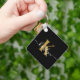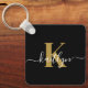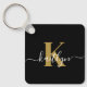 Elegant Black Gold Script Monogram Key Ring