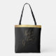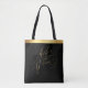 This elegant personalised typography wedding tote bag for the mother of the groom features a simple calligraphy design of modern faux gold script that reads "Mother of the Groom" on a black background with a top border of faux gold. Designed by Susan Coffey.