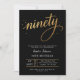 Elegant Black & Gold Script Ninety 90th Birthday Invitation