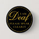 Elegant Black Gold Script Speak Clearly Deaf 6 Cm Round Badge