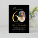Make your celebration unforgettable with this elegant 60th Birthday Invitation, featuring a bold gold-foil-style “60” on a sleek black background. A vintage oval photo frame perfect for showcasing a favorite photo. Modern typography and refined script accents create a classy, timeless look. All text is fully customizable, making it perfect for a 60th birthday party or 60th surprise celebration.