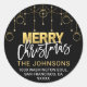Elegant Black Gold Twinkle Stars Christmas Address Classic Round Sticker