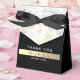 Elegant, vintage, boho chic black and white wedding favour box, with gilded gold and silver floral lace.