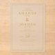 This elegant wedding invitation features a classic layout with centred text, framed by two thin gold lines on a soft beige background. The colour palette is minimalistic, combining deep black and rich gold for a luxurious feel. The design employs crisp digital print techniques, showcasing serif fonts that emphasize formality and tradition. With ample spacing between sections, the invitation conveys sophistication and anticipation, perfect for celebrating a significant life event.