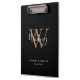 Modern elegant black gold and white script monogram clip board. Personalise the name and monogram initial to create your own unique design. Designed by Thisisnotme©