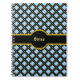 Elegant black and golden diamond pattern on turquoise background Notebook. Shine text can be customised.