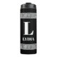 Elegant black greek key meander custom travel Thermal Tumbler mug. Personalised tumbler with black and white design. Chic Birthday gift idea for men and women. Add your own monogrammed name initial. Classy Birthday gift idea for friend, dad, husband, boyfriend, sister, boss, coworker, colleague, friend, sports coach etc. Handy for work, office, gym and more.