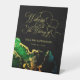 Elegant Black Green Gold Calligraphy Wedding Pedestal Sign