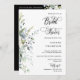 Please note: The elegant beautiful typography wording phrases of "bridal shower" and "kindly rsvp to:" on the front of the invitation AND "gift registry" on the back of the invitation along with the watercolor greenery foliage eucalyptus leaves arrangements and other graphic artwork elements like the lines and rectangle boxes cannot be edited, changed, moved, or deleted. They are fixed.