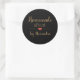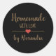 Elegant "homemade with love" sticker with a gold font on a black background embellished by a cute red heart. Customise text.