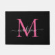 Elegant Black Hot Pink Custom Monogram Script Name Doormat
