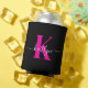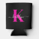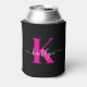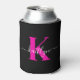 Elegant Black Hot Pink Script Monogram Can Cooler