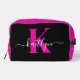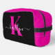 Elegant Black Hot Pink Script Monogram Dopp Kit