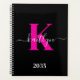 This simple, elegant black 8.5 x 11 soft planner with your first name in a trendy script font in white typed over your first initial in a modern cap font in hot pink is perfect for you. It's stylish and trendy and yet very classic. It will make keeping appointments, meetings, deadlines, homework easy to keep track of and simplify your life.