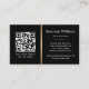 Modern, elegant, black business cards with custom logo and QR code templates. The text and QR code is separated by a printed golden colour gradient dividing line (not real foil). Fonts, font colours and background colours can be changed with the design tool.