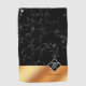 Elegant Black Marble & Copper Foil Script Monogram Golf Towel