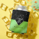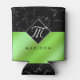 Elegant Black Marble & Lime Green Foil Monogram Can Cooler