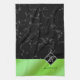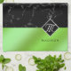 Elegant Black Marble & Lime Green Foil Monogram Tea Towel